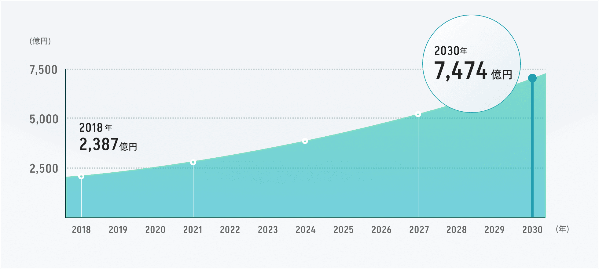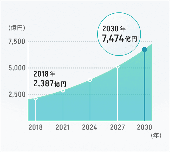 2030年には約7,500億円の規模にまで成長すると言われています。